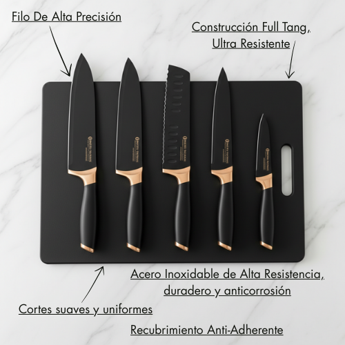 Set de Cuchillos Premium + 12 Piezas de Regalo (Incluye Tabla)